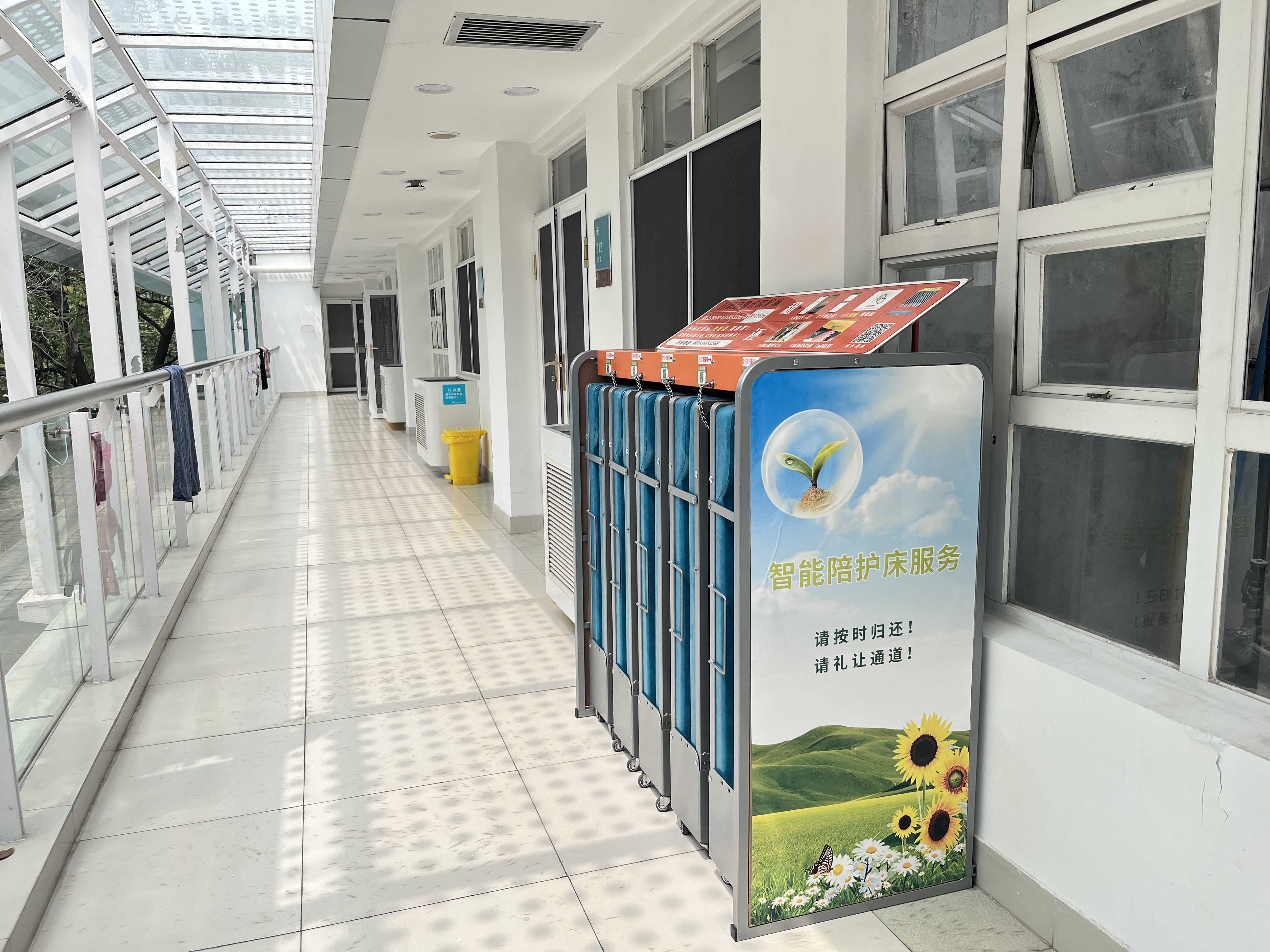 愛陪智能陪護床免費投放供入醫院,配套擺放到病房,白天作為床頭柜或座椅免費用,晚上掃碼付費開鎖鋪床,即在醫院審批的開放時間及收費標準范圍內,限時定向開放給住院患者的陪護家屬掃碼付款使用;白天作為床頭柜、座椅免費使用,且掃碼被禁用打不開床以保證病房通道順暢。